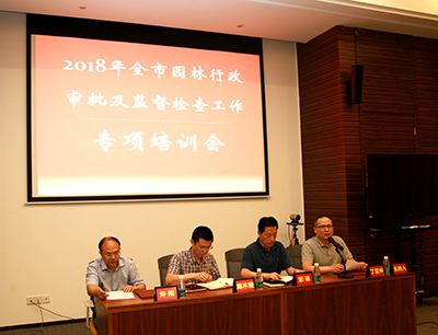 2018年6月20日上午,在院301會議室成功召開了2018年全市園林行政審批及監督檢查工作專項培訓會。此次培訓由武漢市園林和林業局審批處牽頭組織,市園林建管站和公司負責組織實施。參加培訓的人員有各區園林和林業主管部門從事園林行政審批及監督檢查工作的分管負責人、部門負責人和相關工作人員,市園林和林業局彭揚副局長、公司施木俊總經理、安永強副總經理及綜合部、技術質量安全部、測繪工程公司的相關人員也參加了本次培訓會。