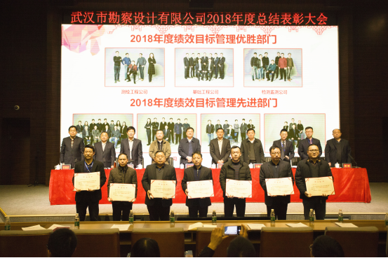 1月29日下午,武漢市勘察設計有限公司2018年度總結表彰大會在307學術報告廳召開。測繪院肖建華院長、肖輝書記、彭漢發副院長、王厚之總工程師出席大會,勘察公司管理層及員工代表共260余人參加了會議。